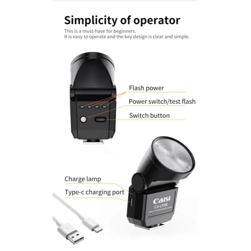 - 300mAh 3.7V battery, up to 480 flashes (1/1 power)